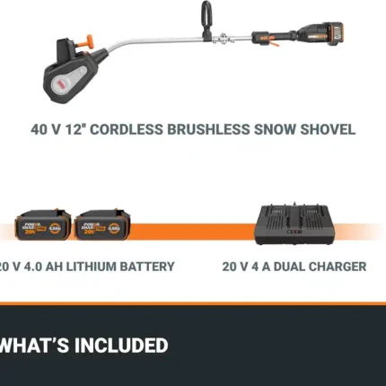 WORX Nitro 40V Cordless Snow Thrower, 12-Inch Electric Snow Shovel with Dual 4.0Ah Batteries & Charger (Black)