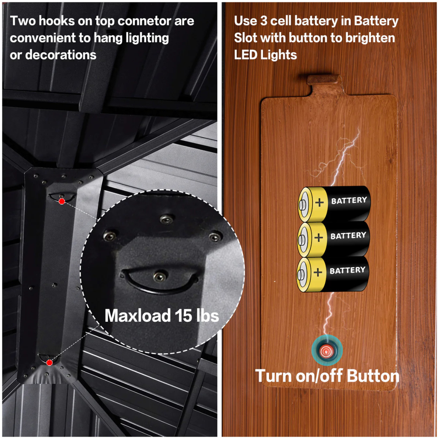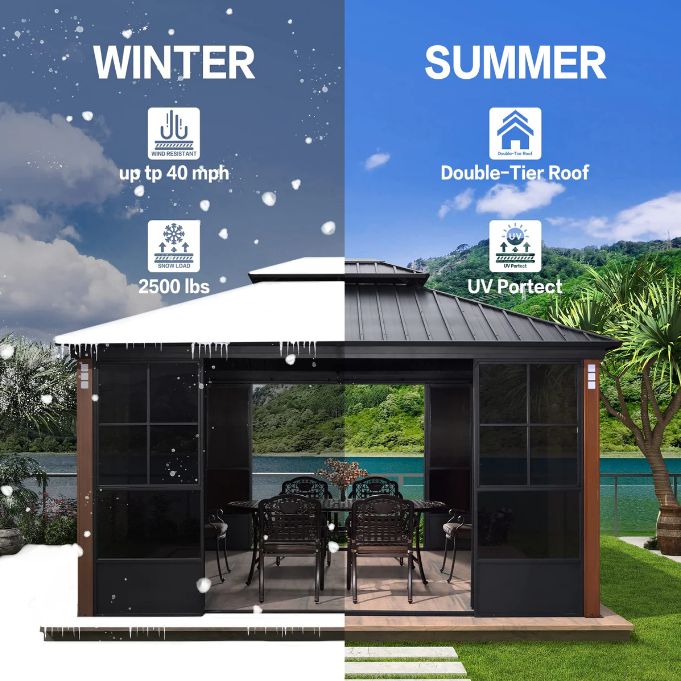 Perfect for relaxing, entertaining, or dining outdoors, this gazebo combines strength, elegance, and functionality. Its contemporary design blends seamlessly with a variety of outdoor decors, making it an ideal addition to your backyard, patio, or sunroom setup.