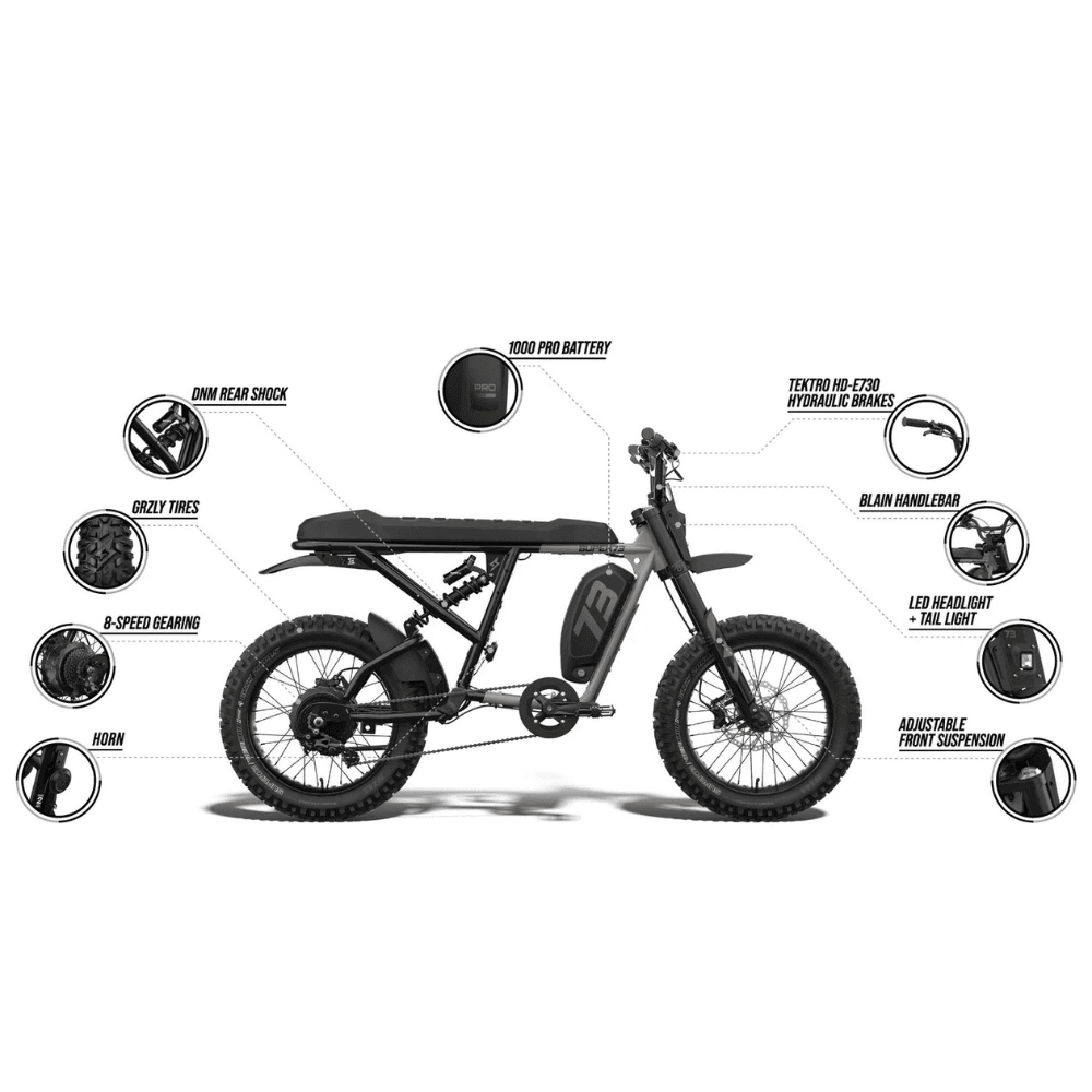 Tackle sand, snow, rock, or dirt with confidence thanks to 4” fat tires, a suspension fork, and a powerful rear hub motor designed for rugged environments. - Pedal Assist & Throttle Modes