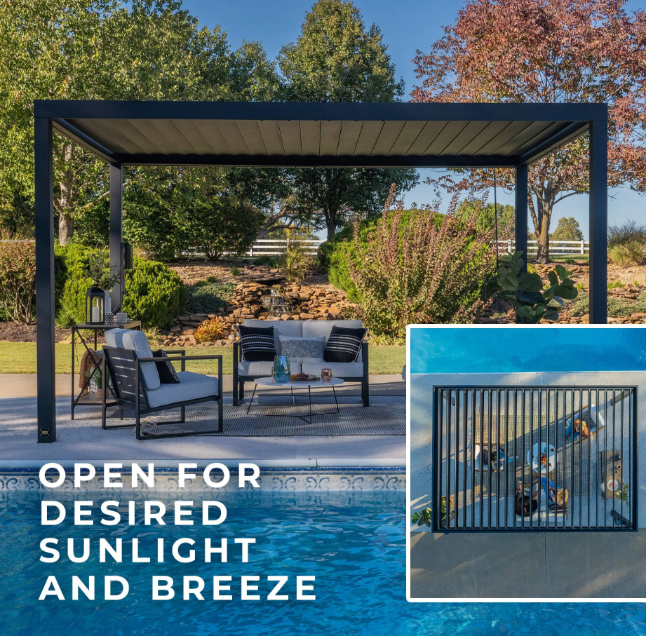 Easily adjust the louvers to create your desired level of shade, ventilation, or rain coverage—making your outdoor area usable year-round.