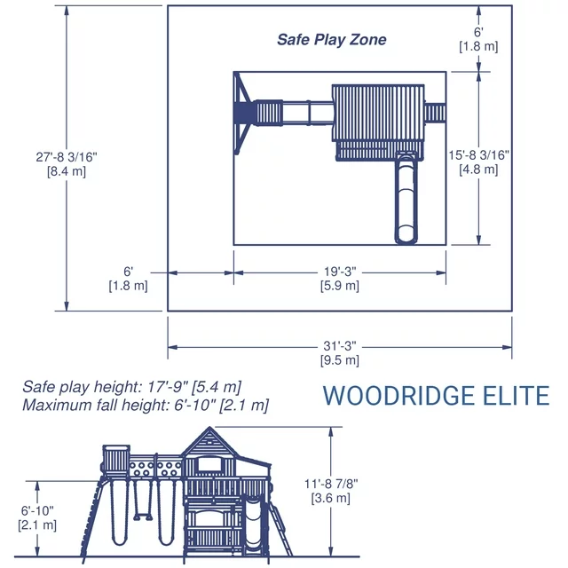 With its reinforced construction, UV-resistant components, and smooth-finished lumber, the Woodridge Elite is built to withstand year-round outdoor conditions while maintaining its structural integrity and beautiful appearance. This is an ideal long-term investment for families who value safety, quality, and high-capacity play options.