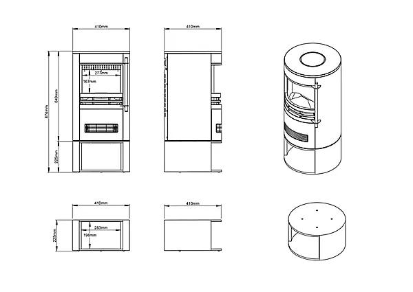 Compact footprint with a tall, stove-style profile