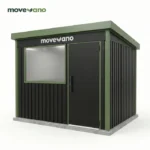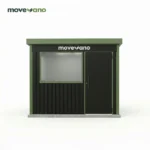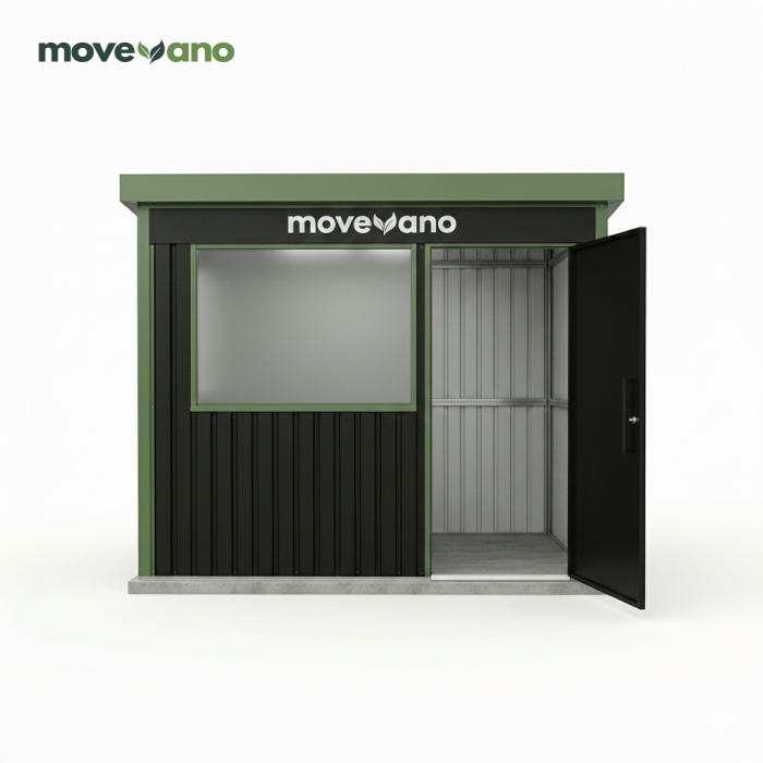 The Moverano Compact Modern Storage Shed is a sleek and functional outdoor structure designed to provide secure, weather-resistant storage with a contemporary style. Featuring striking black vertical panels, a sloped roof, and vibrant green architectural trim, it is an ideal solution for decluttering small yards, patios, or decks. It offers ample space for common gardening tools, equipment, and seasonal items while enhancing the visual appeal of any modern outdoor setting.