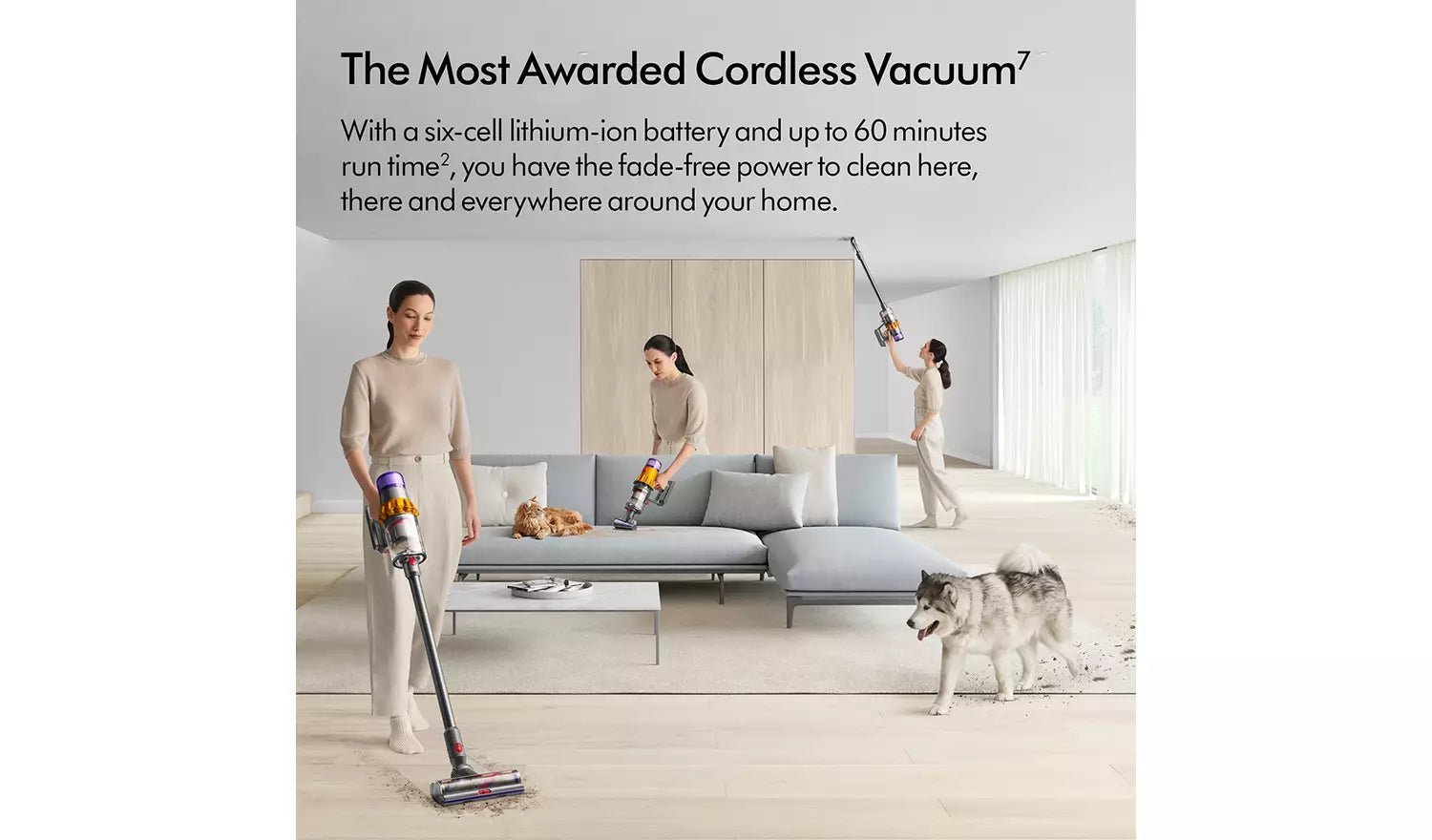 Cordless versatility to deep clean all around your home. Versatile Dyson cordless technology – for easier cleaning on all floor types, mattresses, sofas and stairs.