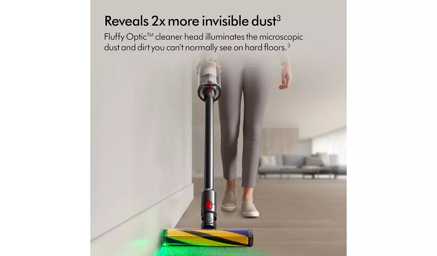 Fluffy Optic cleaner head illuminates the microscopic dust and dirt you can’t normally see on hard floors.