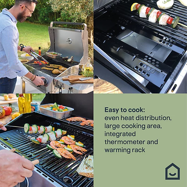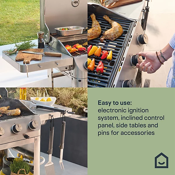The Powell Goodhome gas barbecue, entirely in stainless steel, is a high quality and resistant product, designed to last. Thanks to its inclined control panel, ergonomic control buttons and electronic ignition system, it is very easy to use. You can adjust the temperature of each burner independently for precise cooking of your food according to your needs. Practical, it is also easy to install and move. The Powell Barbecue is therefore the perfect choice for barbecue enthusiasts looking for a product that is both functional and efficient, and wishing to grill successfully with ease and conviviality.