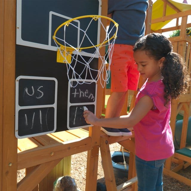 Built from high-quality, weather-resistant lumber and reinforced hardware, the Mockingbird View Set is crafted for long-term backyard use. Its thoughtful layout includes a multi-level tower, climbing elements, a basketball-style hoop, a crawl-through tunnel, swings, and a classic tire swing — providing children with endless play opportunities in one integrated structure. Each component is designed to support physical development while inspiring creativity, teamwork, and independent play.