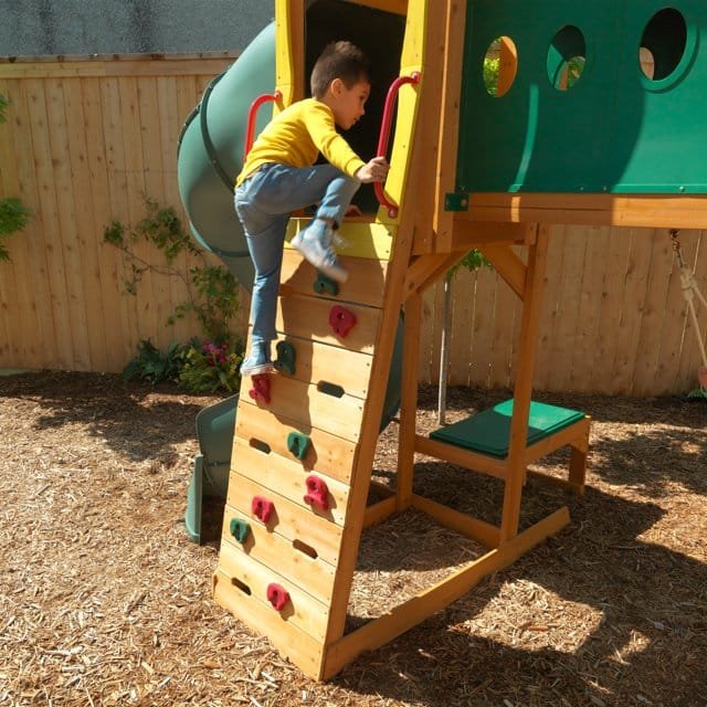 The tower, tunnel, hoop, swings, and accessories inspire role-playing, teamwork, and cooperative games.