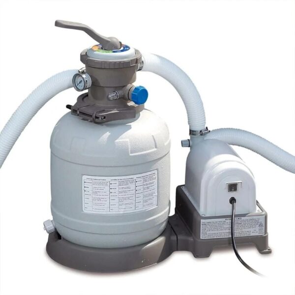 • Includes 12-inch 110/120V sand filter pump, pool cover, ladder, ground cloth, and maintenance kit