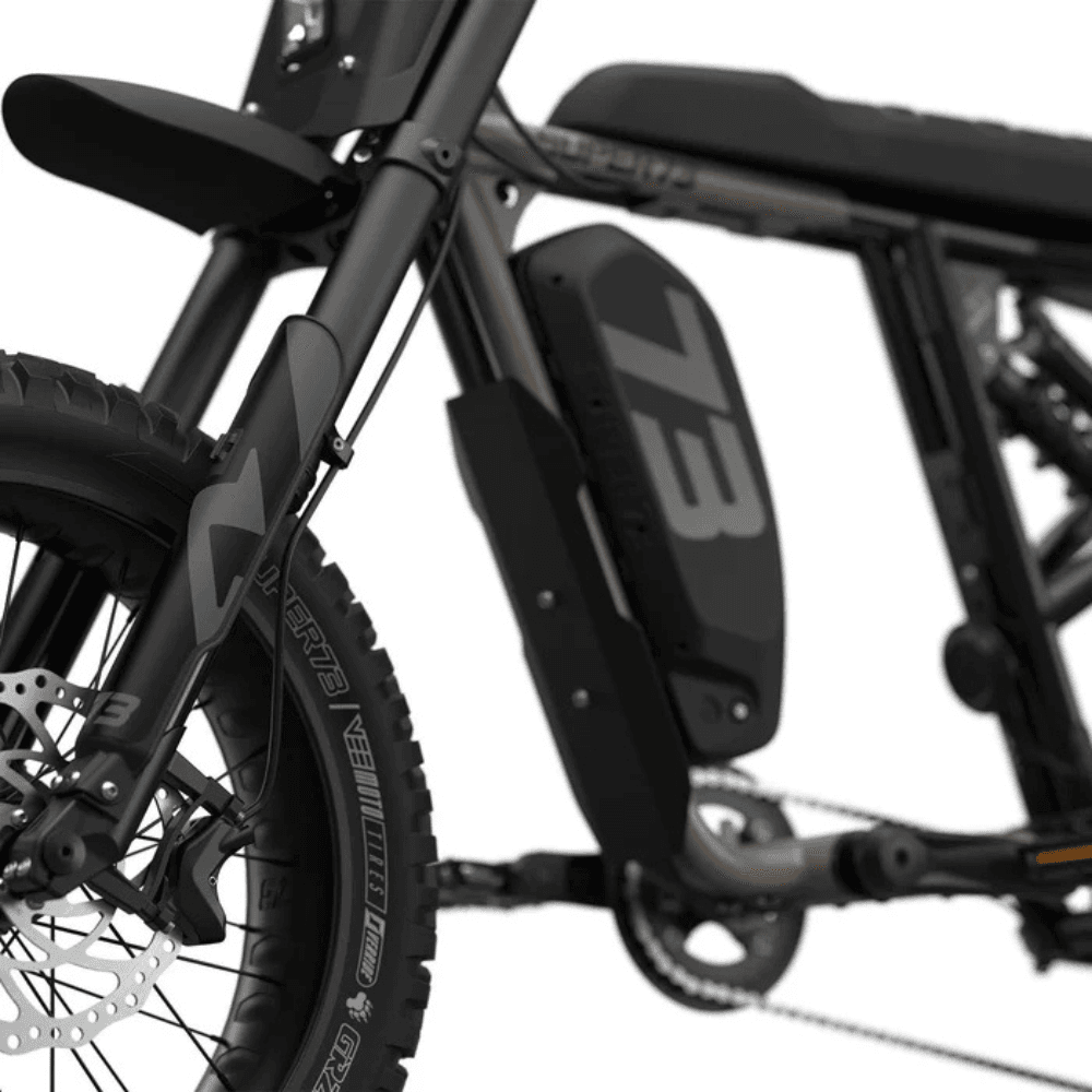 • Custom Power System: Experience a new level of control with our UL2271 Compliant battery system. Boasting a high-capacity, removable battery (960Wh [48V 20Ah] nearly equivalent to a 1000 Wh powerhouse), it lets you fully customize your range and power output to suit your riding style.