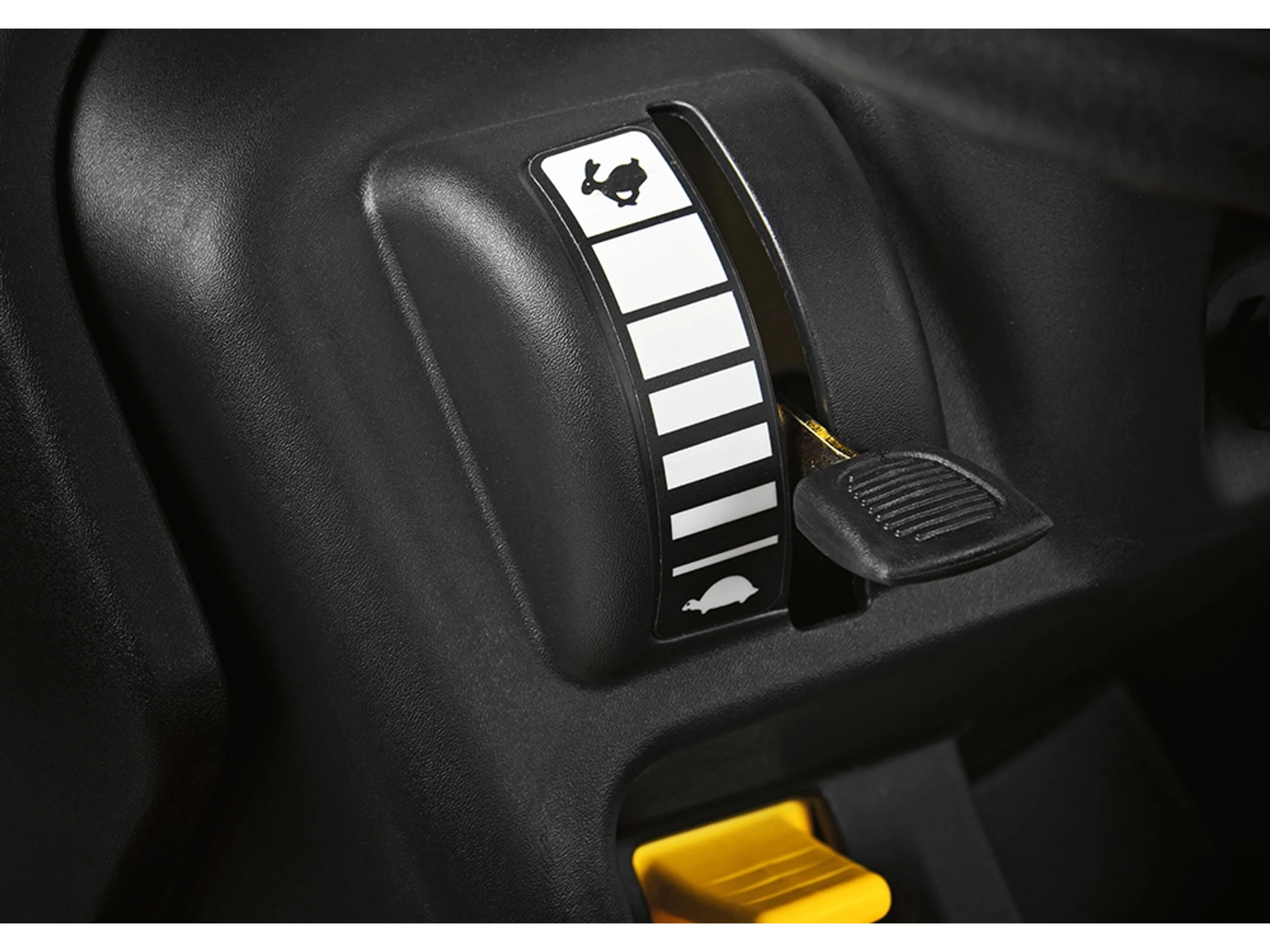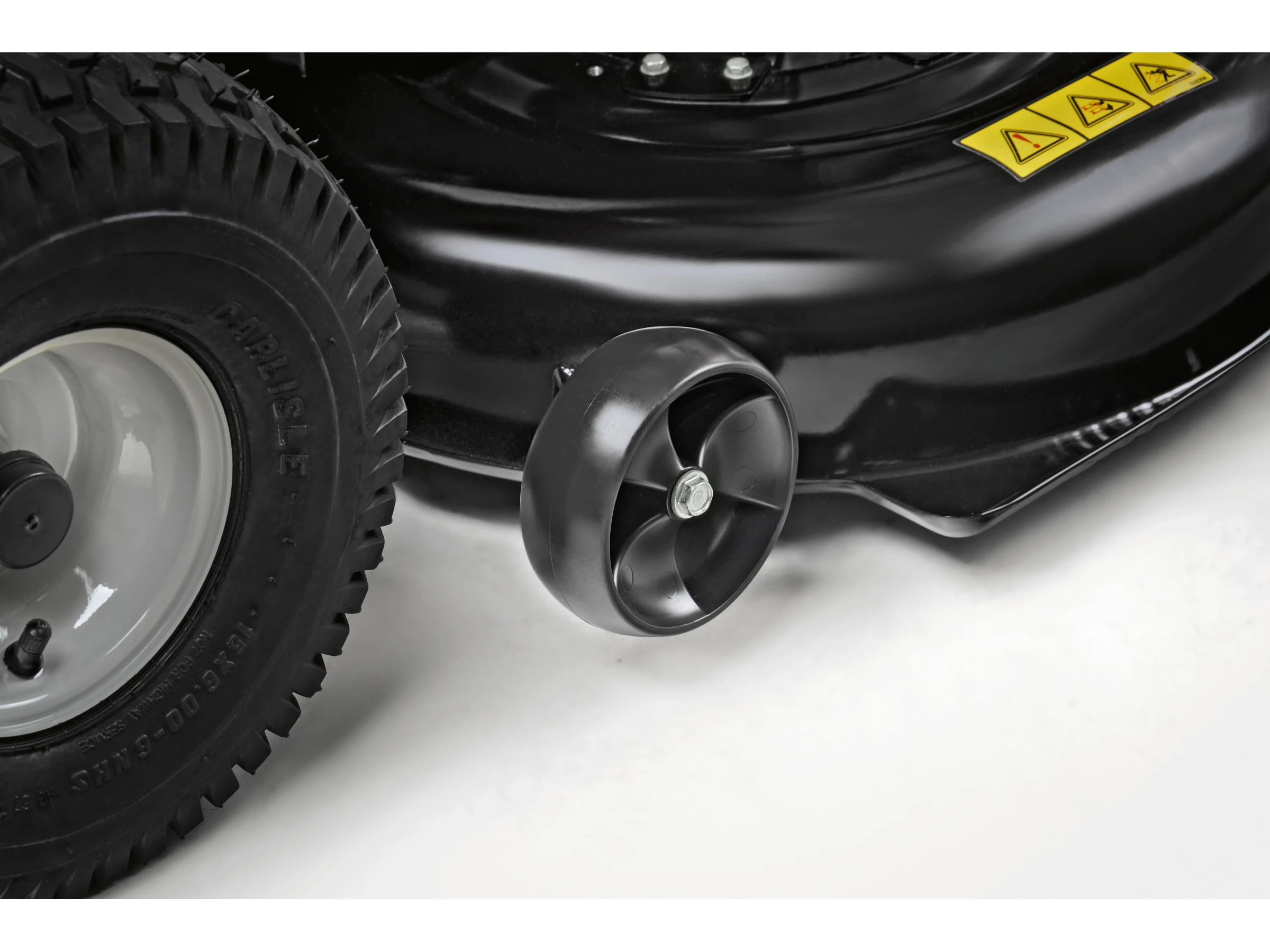 Covers large lawns quickly and efficiently thanks to wide cutting deck