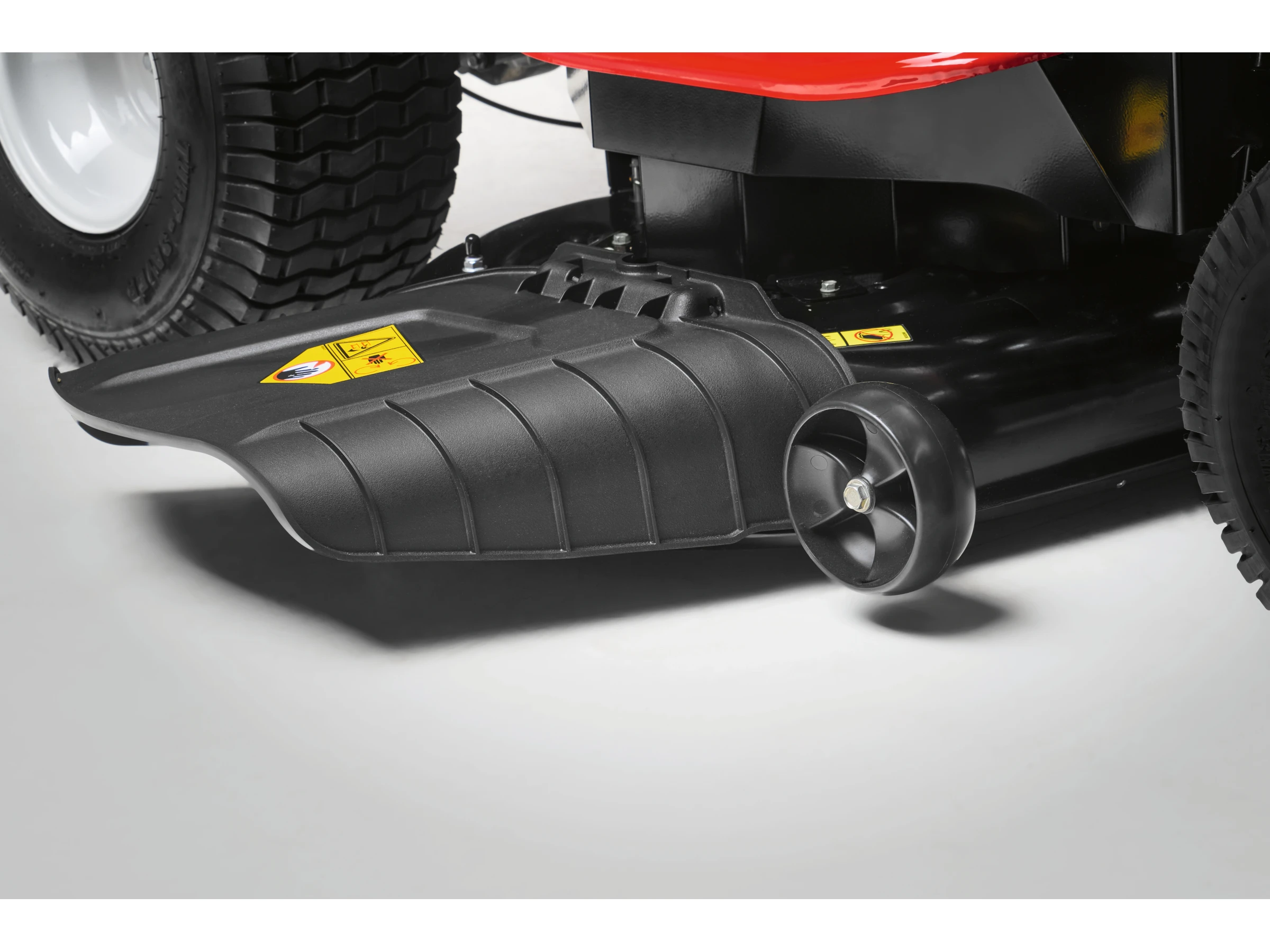 Wide 107 cm cutting deck with dual blades for maximum area coverage